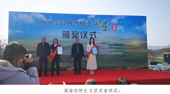 11月10日,省农科院党委副书记、院长周维佳出席由省农村产业革命茶产业发展领导小组主办的“2021年贵州省秋季斗茶赛颁奖仪式”活动,并为选手颁奖。