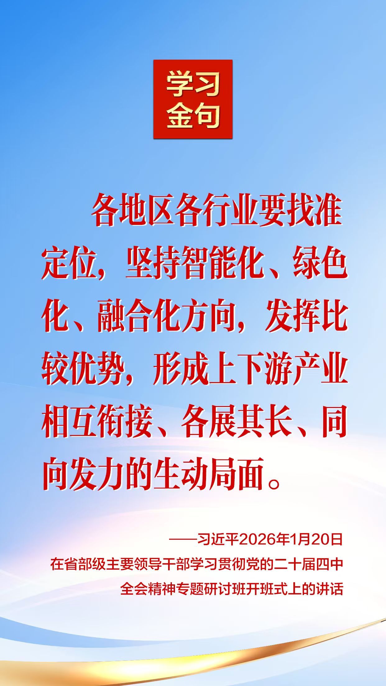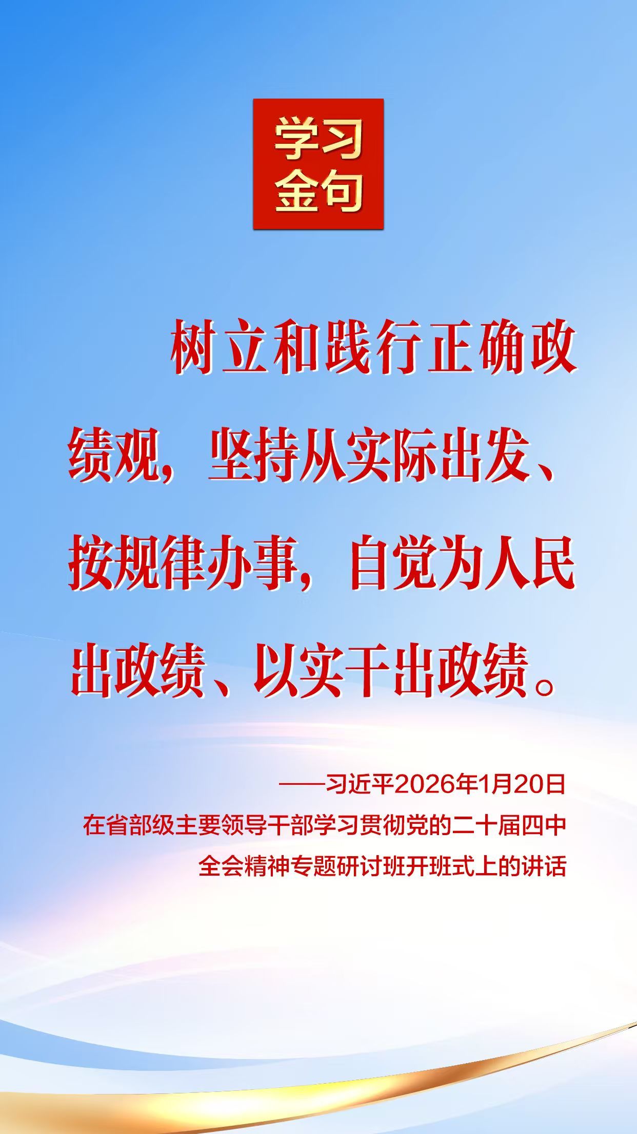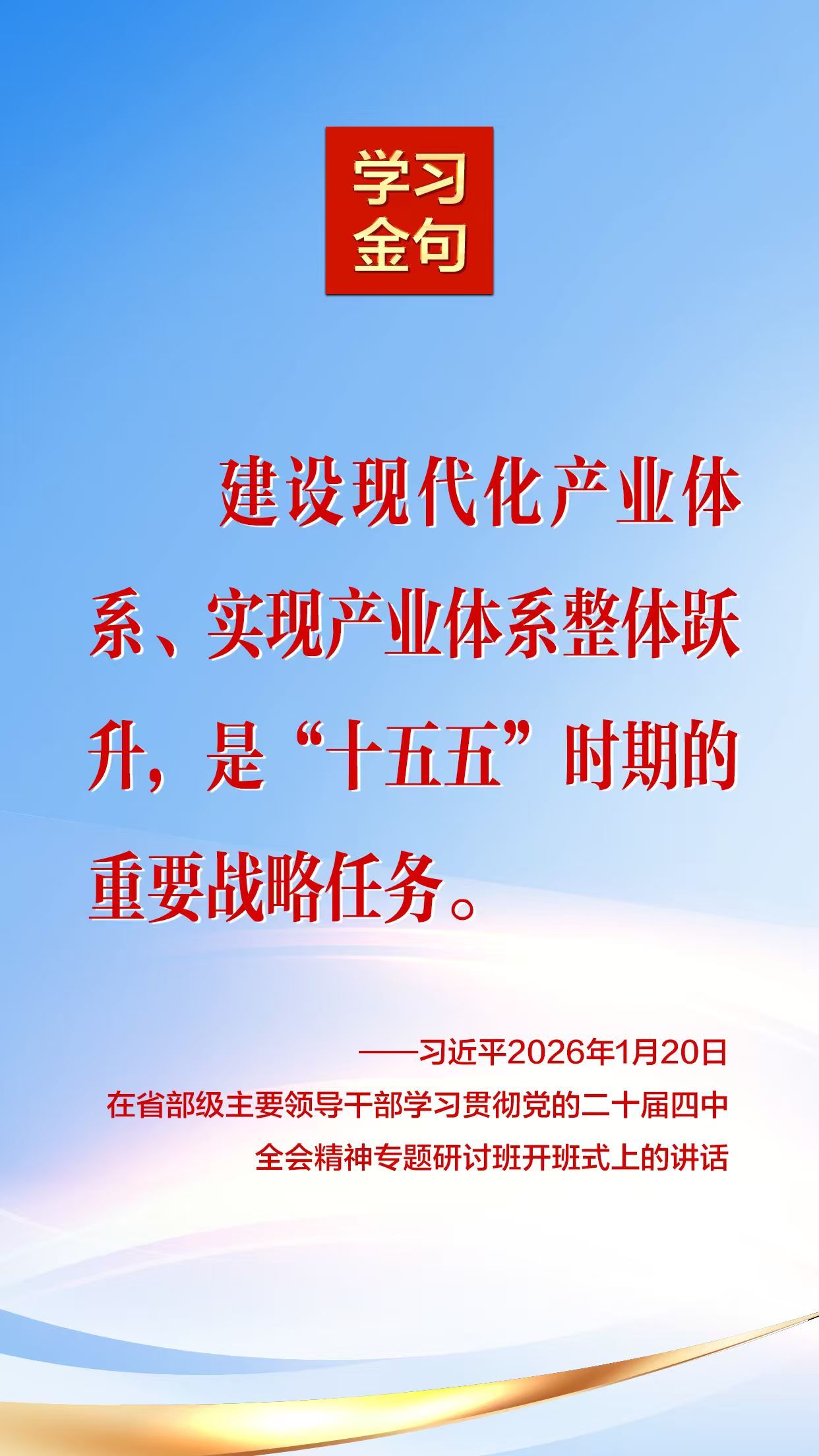 2026年1月20日,中共中央总书记、国家主席、中央军委主席习近平在省部级主要领导干部学习贯彻党的二十届四中全会精神专题研讨班开班式上发表重要讲话。 我们摘录了部分内容,一起来学习!